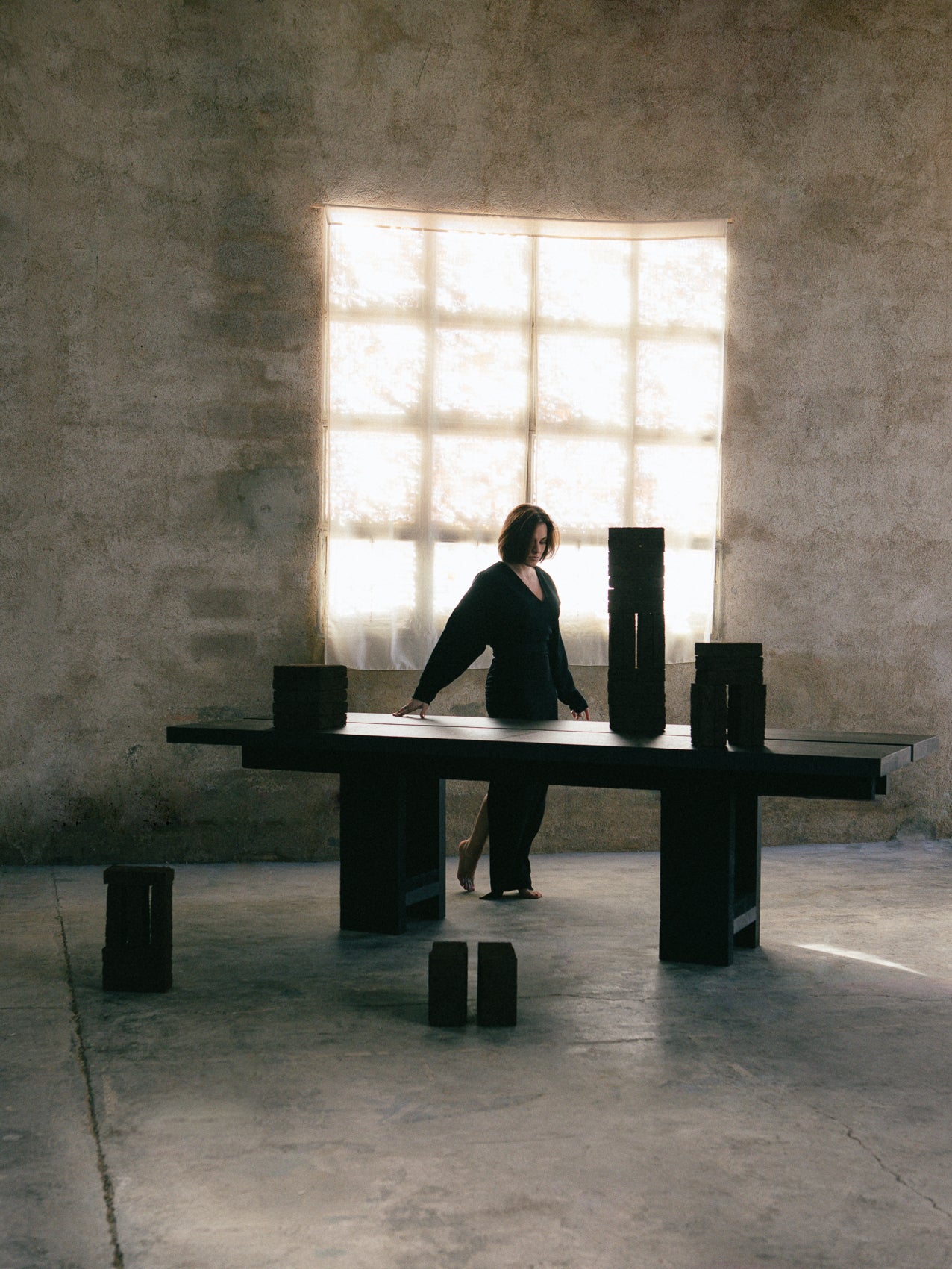 The table is composed slowly, with attention to each step of the process. In our workshop in Spain, we prepare the oak elements of the table and the structural frame to support the bark. Cédric collects and dries the bark in Portugal. The bark is then brought to his atelier in Belgium, where he works by hand with the material, defining the texture and finish.