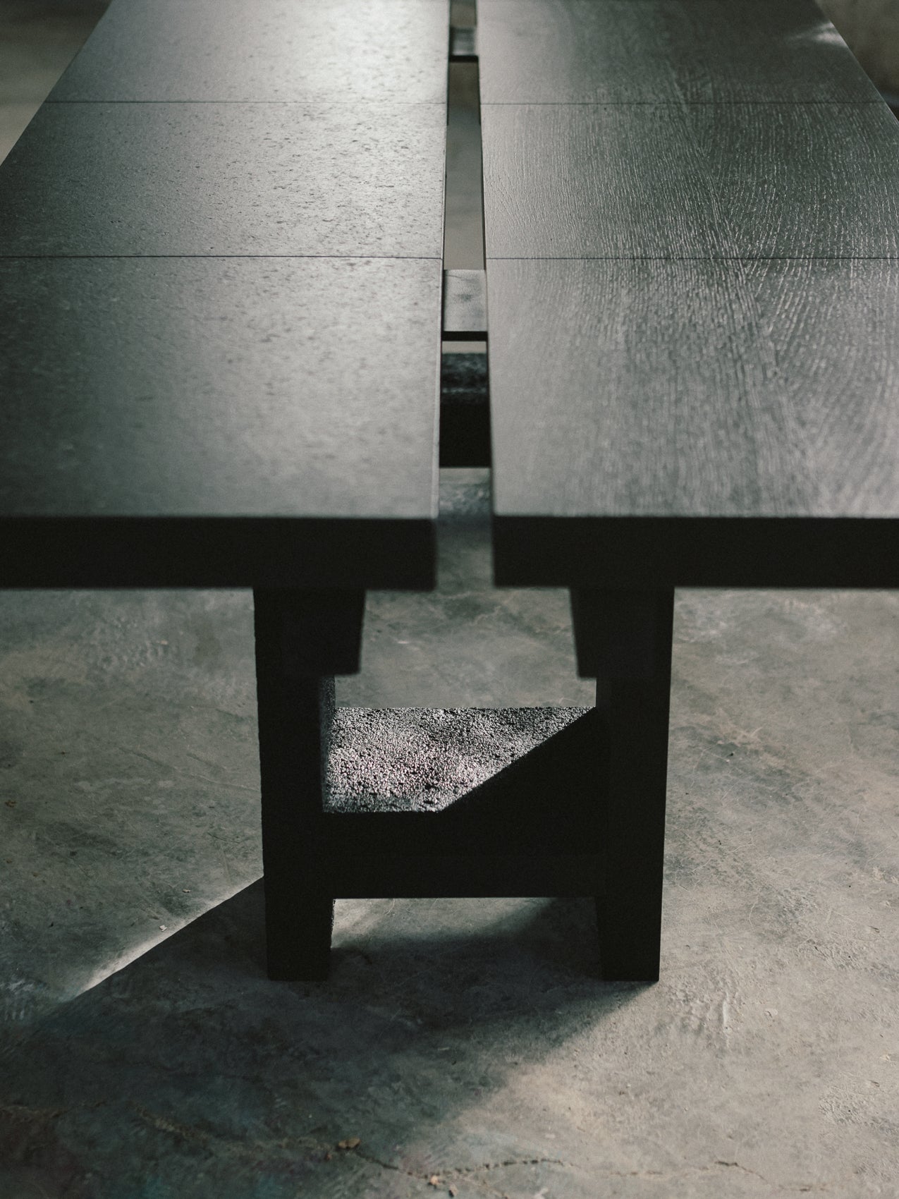 The finished material is then sent to the atelier in Spain, where we compose the table, creating a dialogue between the two different forms of oak.